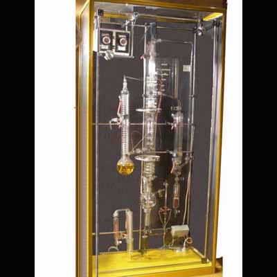 Rondbodem met druppeltrechters en koeler in vogelnes...