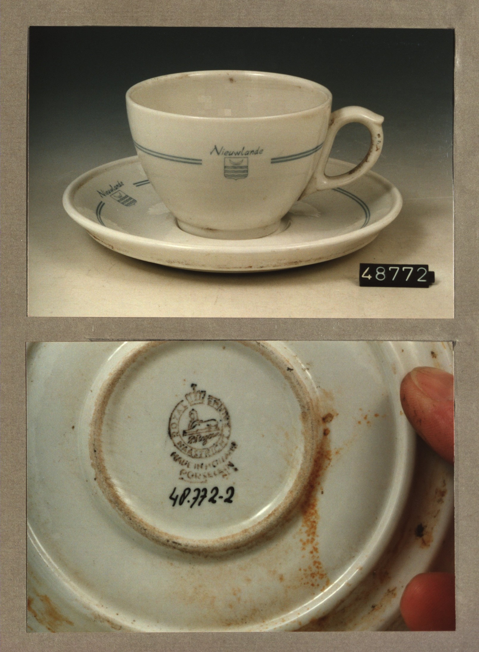 Kop en schotel, model SMN met decor Gemeente Nieuwlande