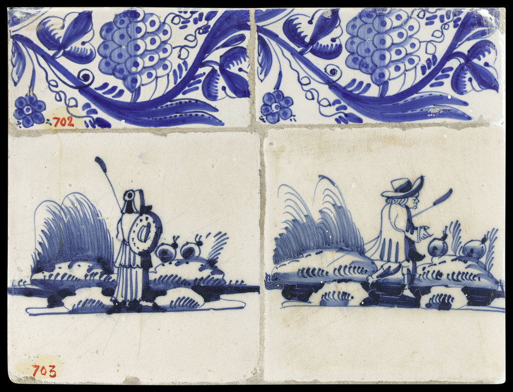Tegelveld in tinglazuur, voorstellende decor beugelb...