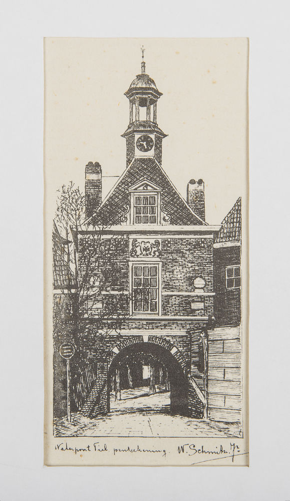 Drukwerk, voorstellende de Waterpoort te Tiel vanaf ...