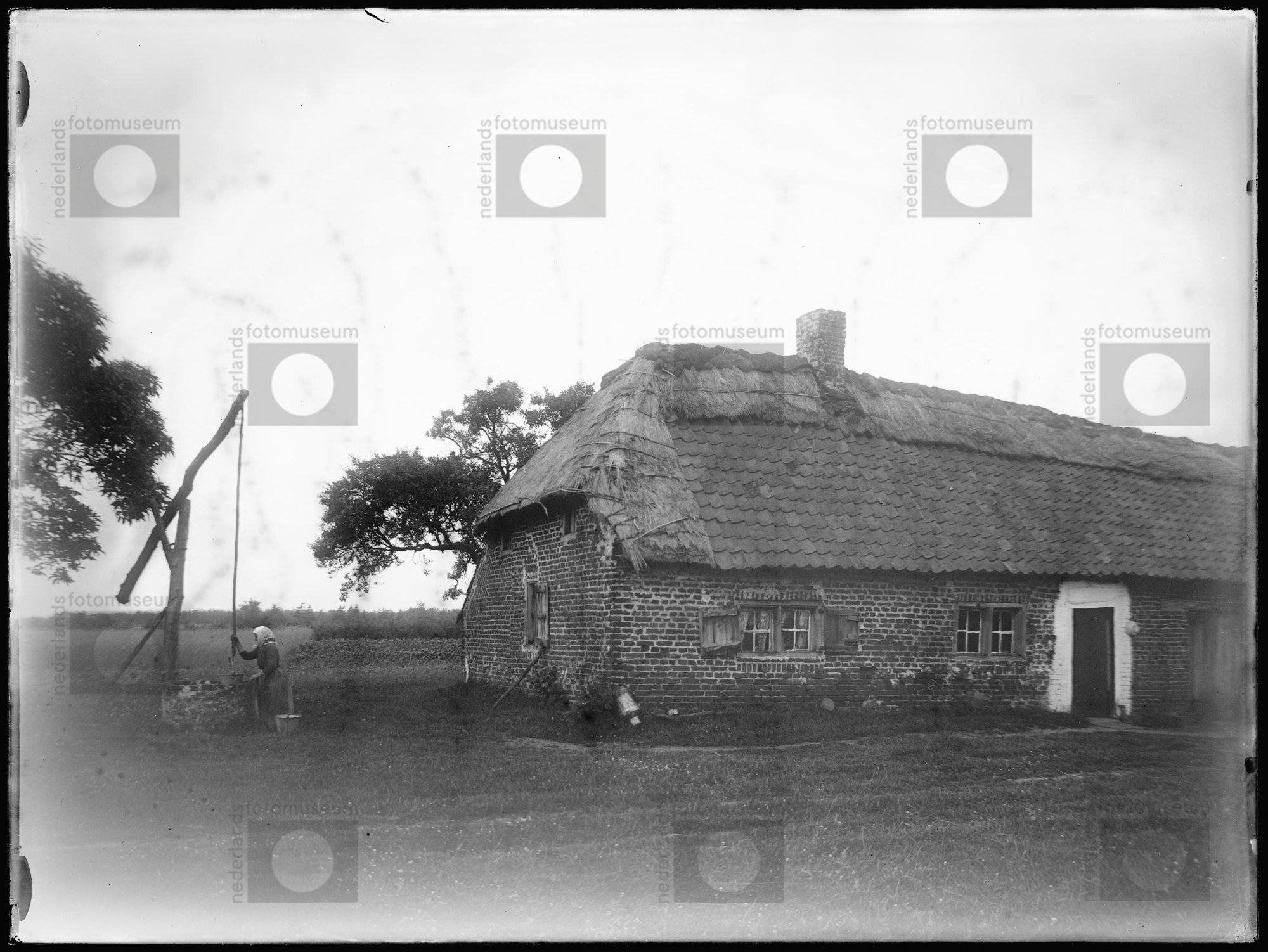 Vrouw put water bij haar woning, Heythuysen (1914)
