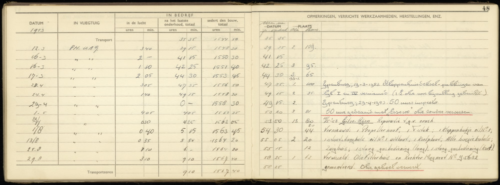 Flugbuch Hptm. Framm blad 48