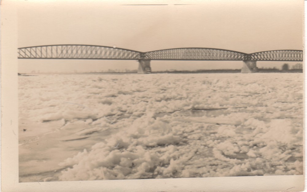 IJsgang bij de spoorbrug van Zaltbommel in 1924.
