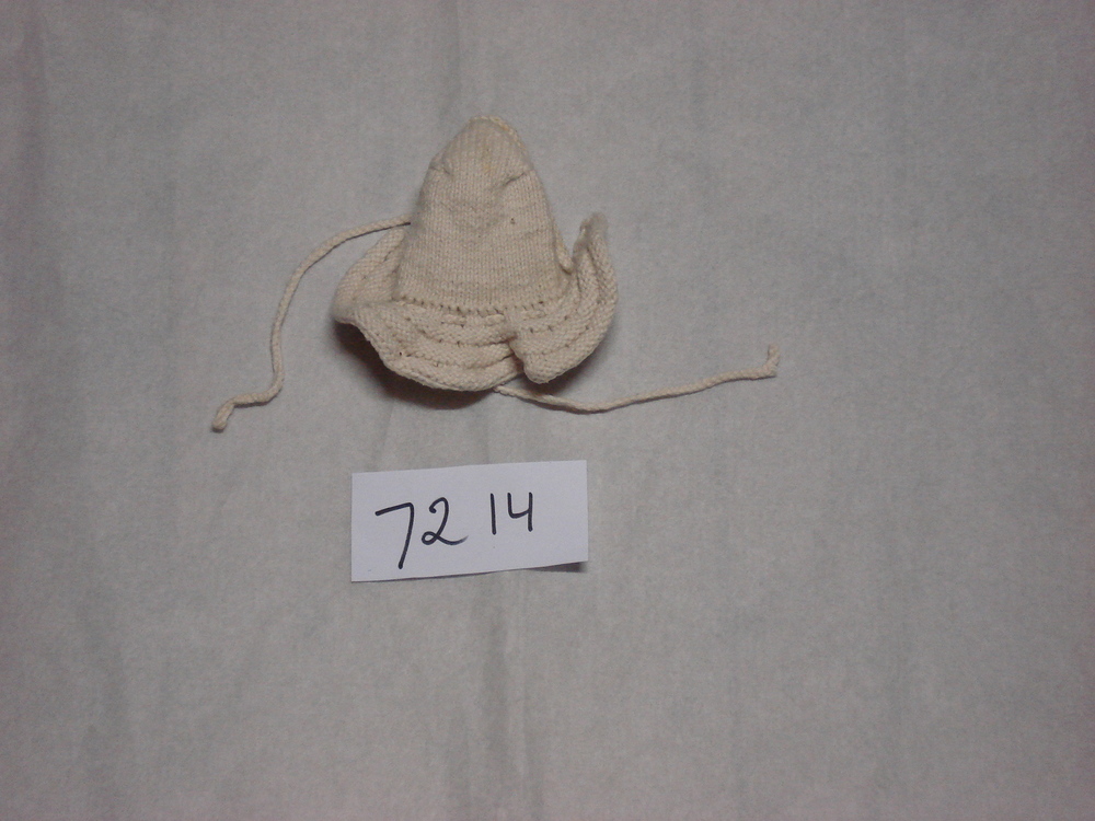 wit gebreid mutsje van katoen, oefenstuk voor school...