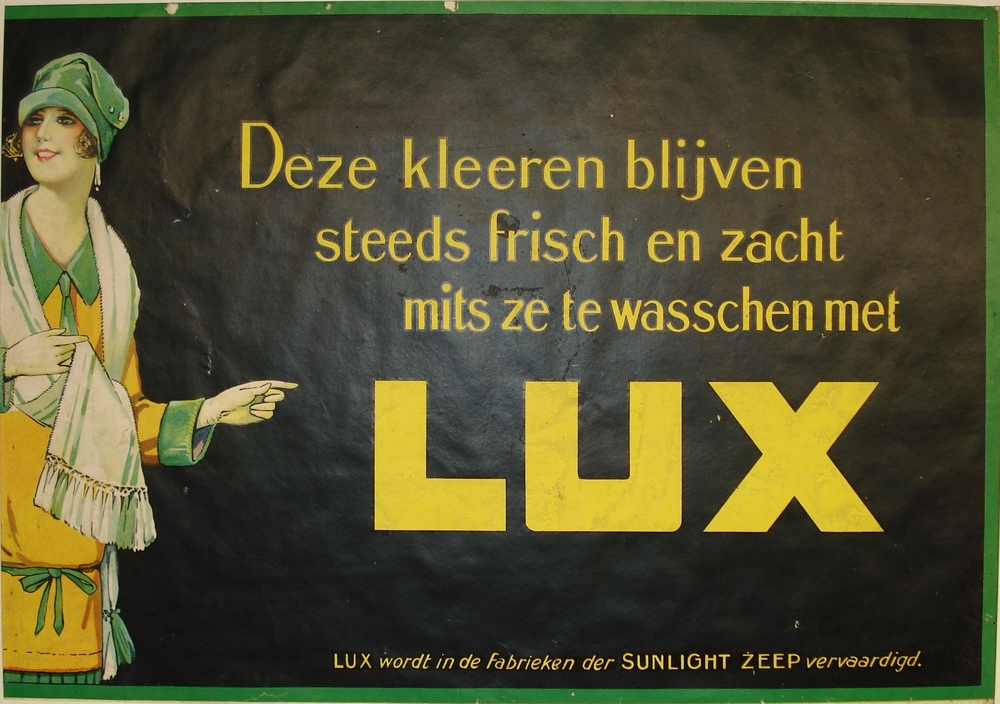 reclame affiche Lux. Vrouwenfiguur met sjaal en wijz...