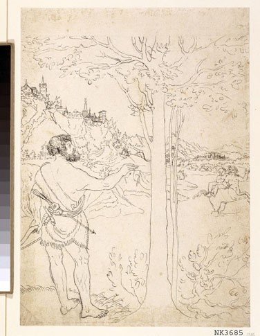 Hercules kijkt toe hoe Nessus Deianeira ontvoert