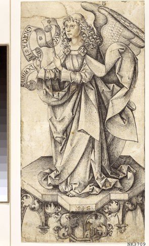 De aartsengel Gabriël op een geornamenteerd voetstuk
