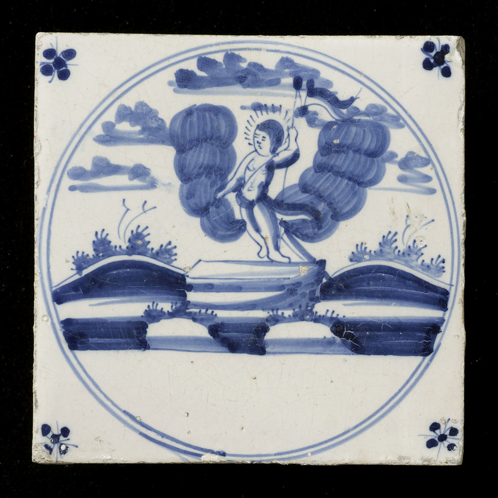 Tegel van keramiek, tinglazuur, voorstellende een zo...