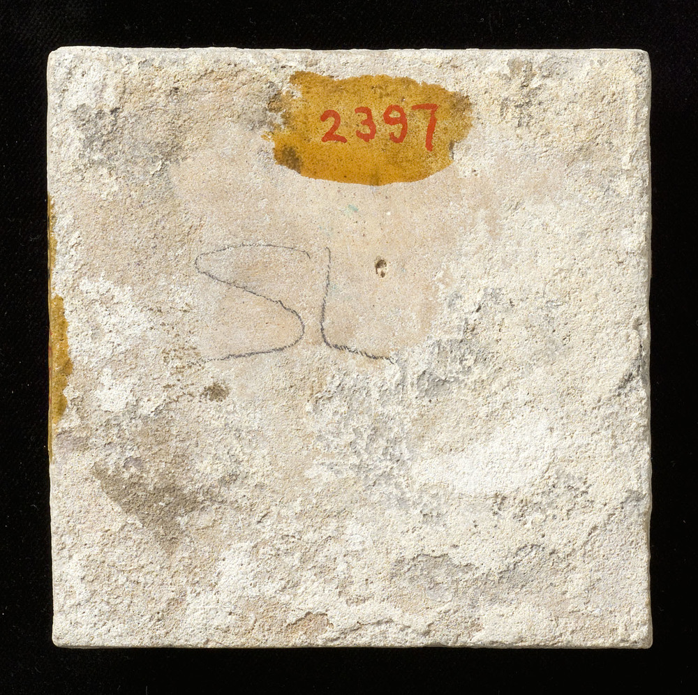 Tegel in tinglazuur, voorstellende schildpadtegel, v...