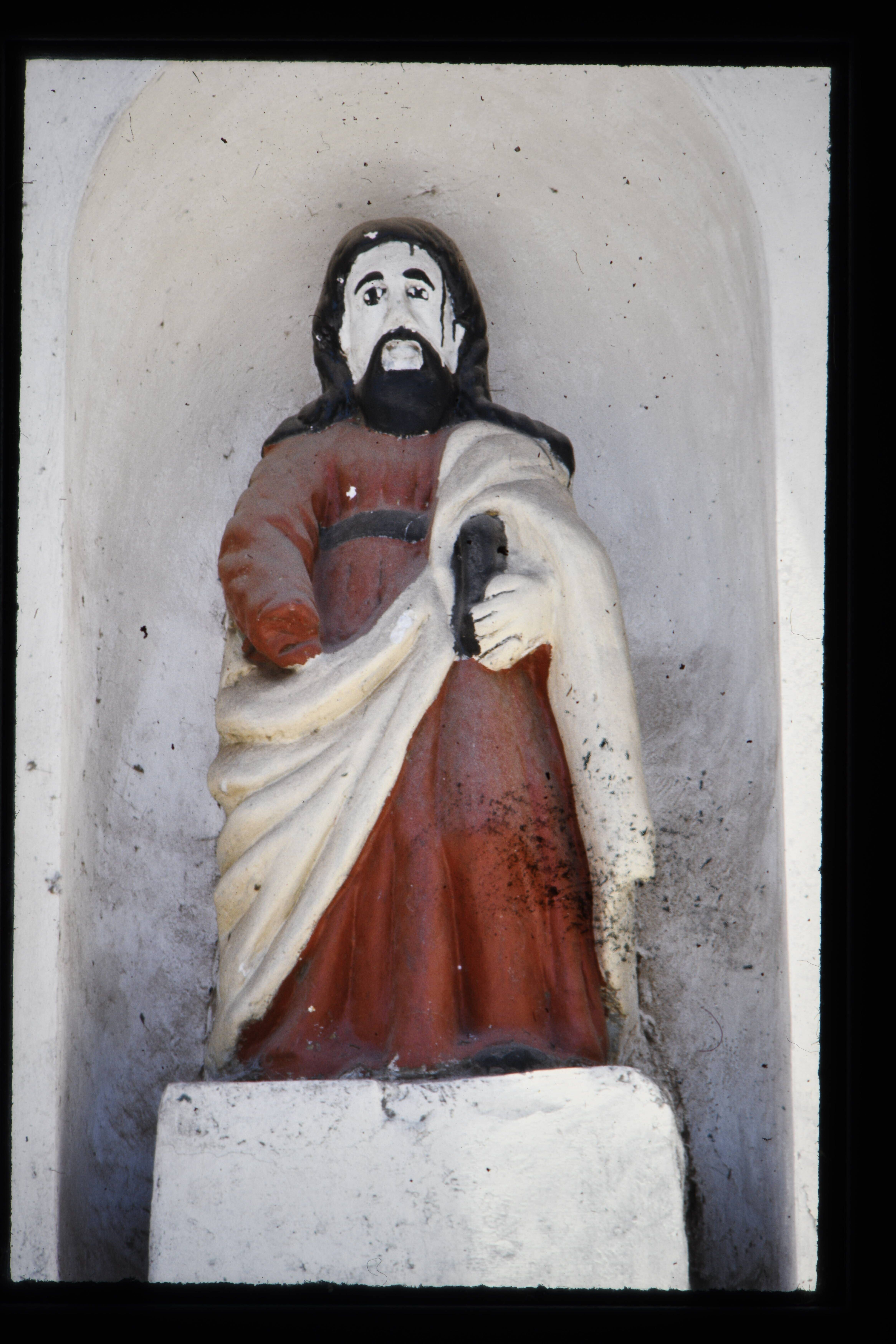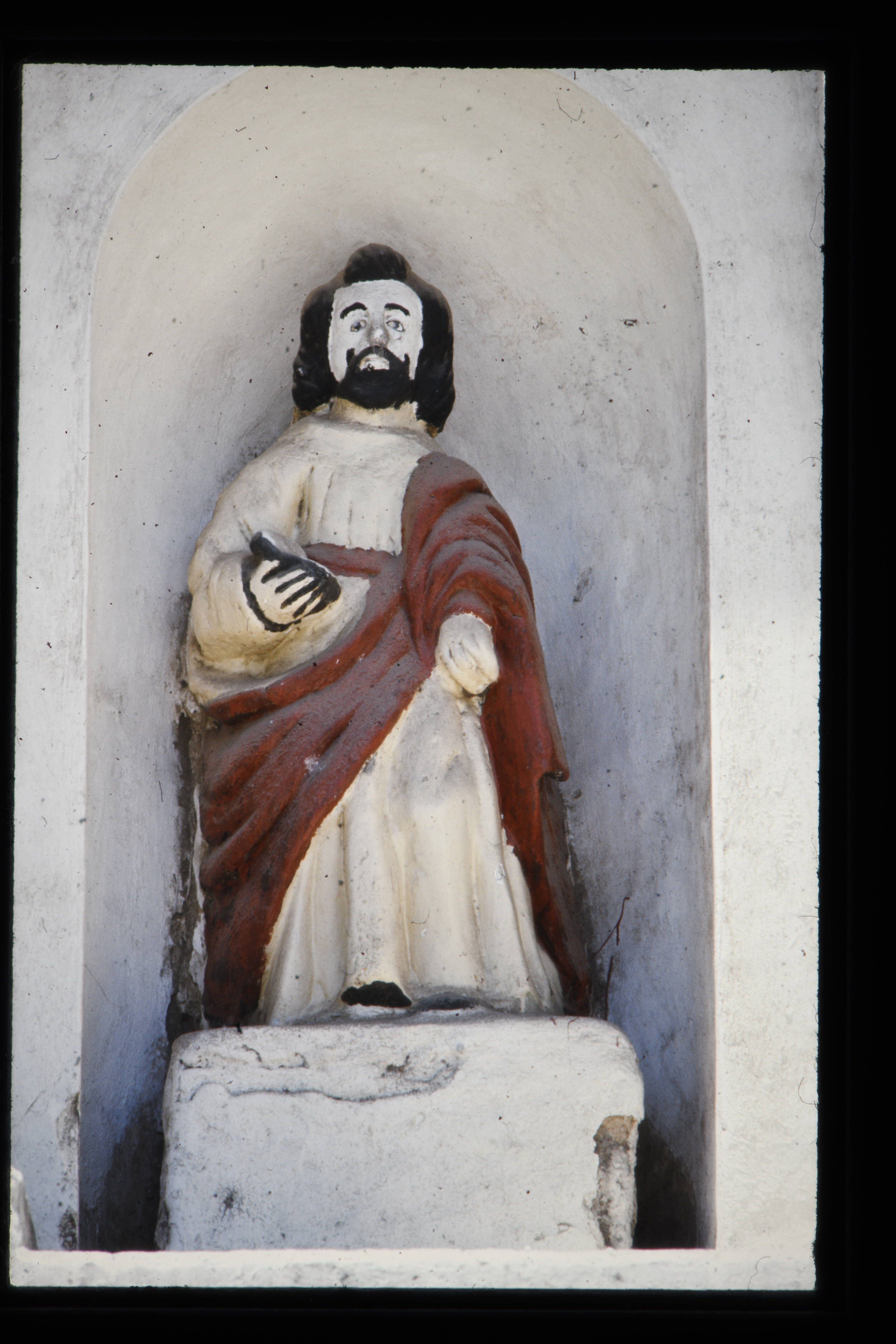 'Heiligenbeeld in een nis, links en rechts van de to...
