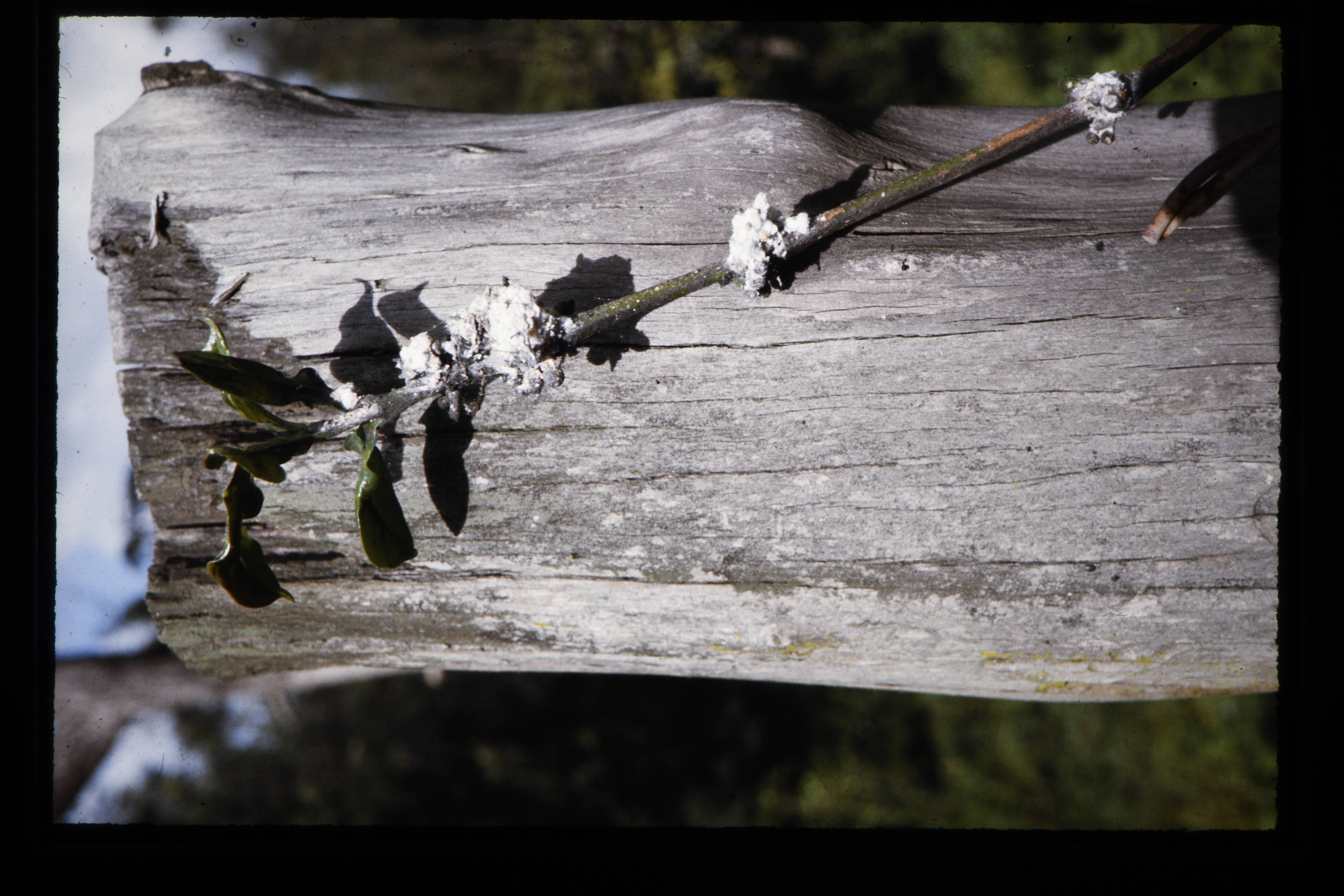 'Korstmos op de onderkant van een koffiestam.'