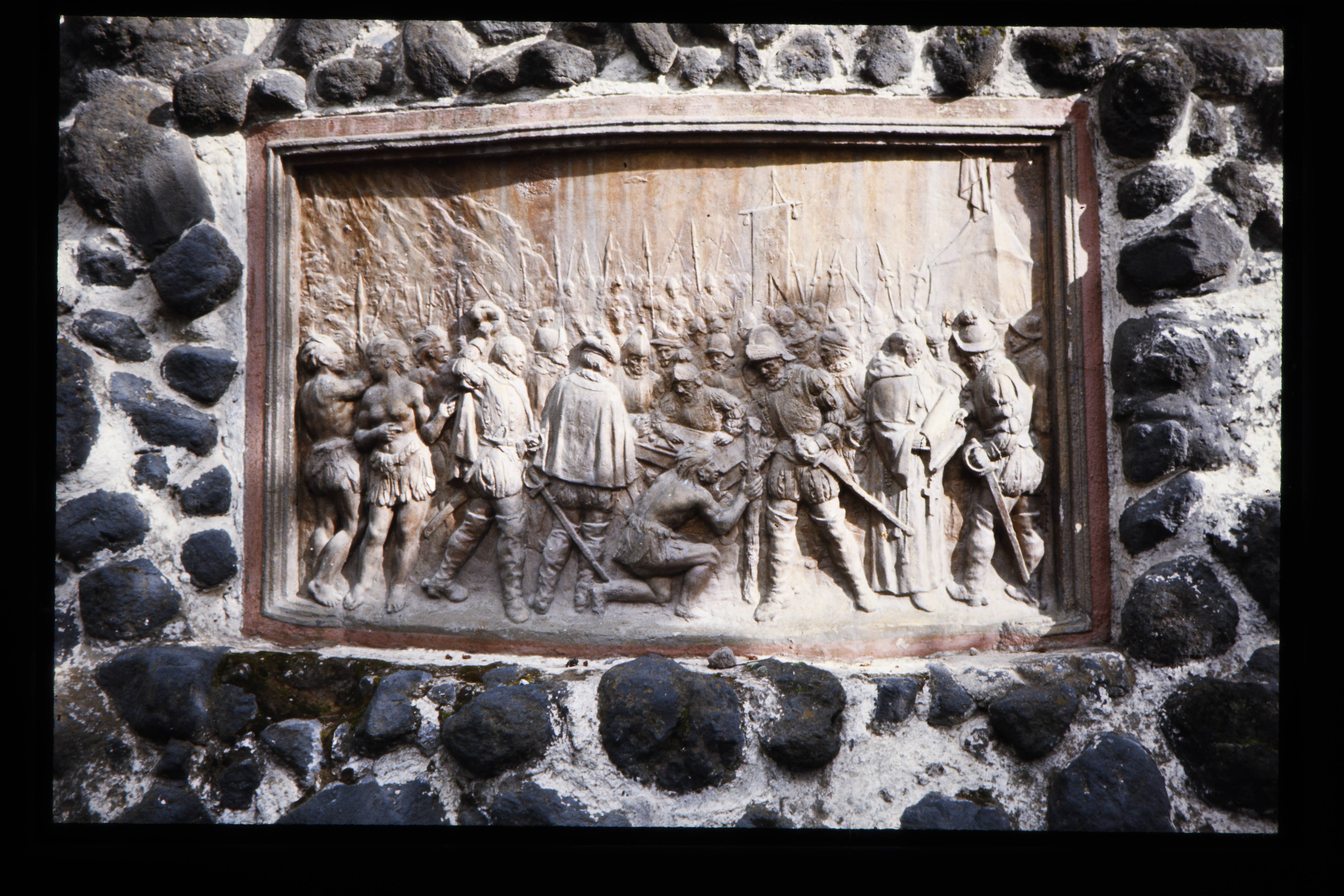 'Bronzen plak aangevende de stichting van de stad "l...