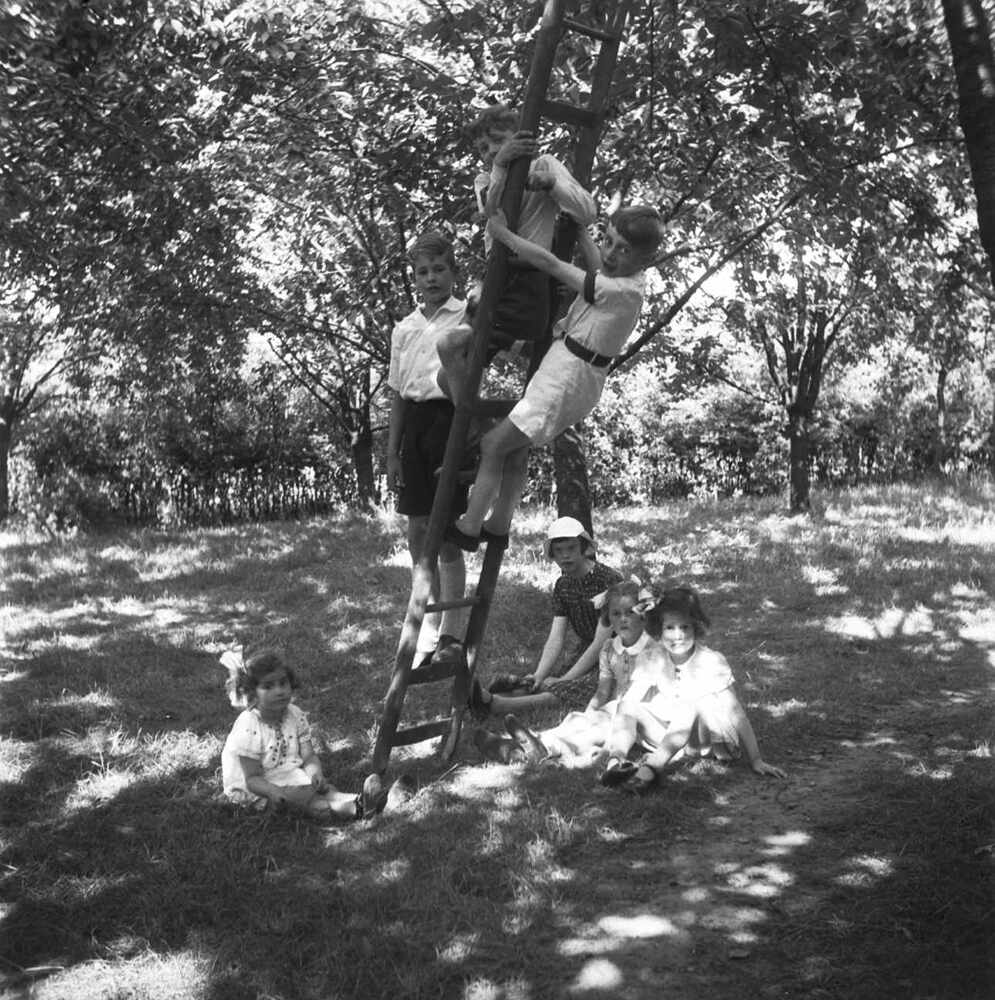Foto, voorstellende een kersenboomgaard met kinderen...