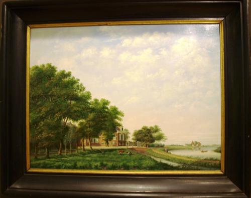 Schilderij in olieverf getiteld 'Gezicht op het buit...
