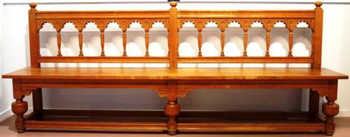 Zitbank van hout gebruikt voor bezoekers van het Fri...