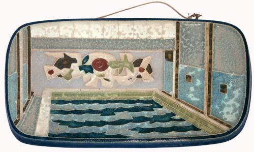 Cloisonné tegel. Koninklijk Huis, zwembad geopend do...