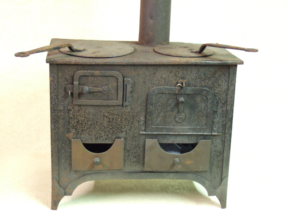 fornuisje van ijzer en koperen aslades, circa 1900