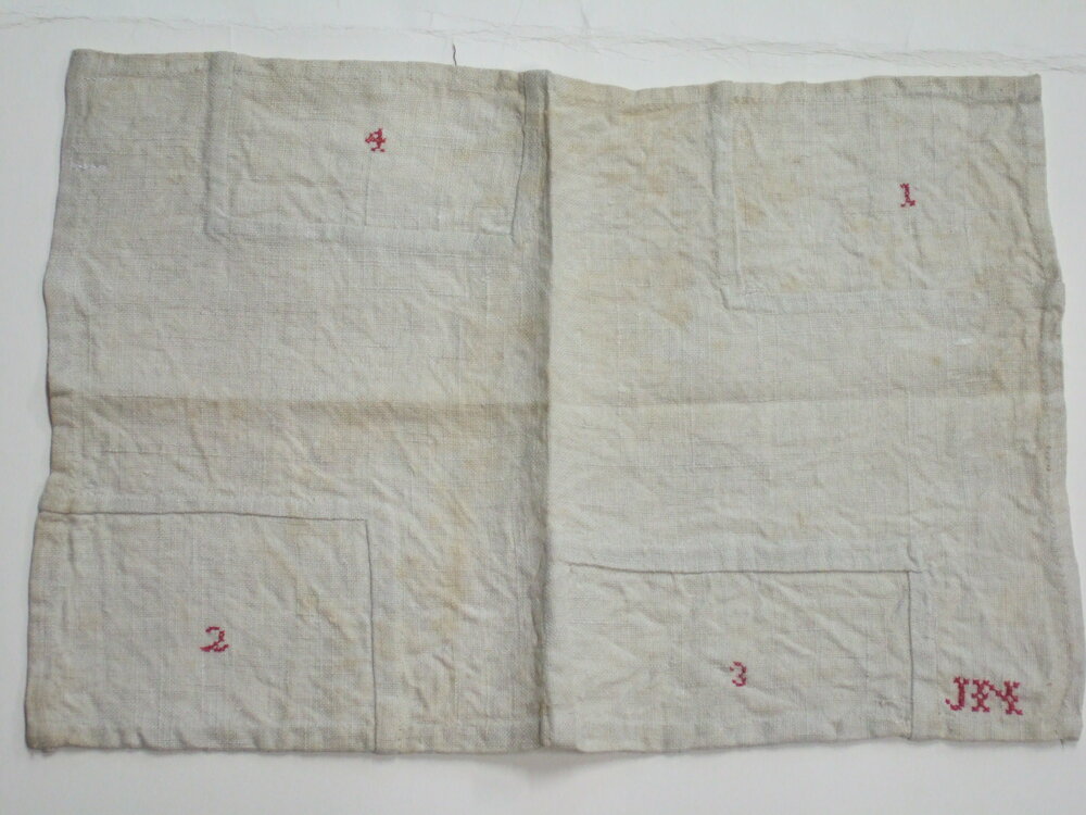 linnen hoeken inzetlap genaaid door een leerling naa...