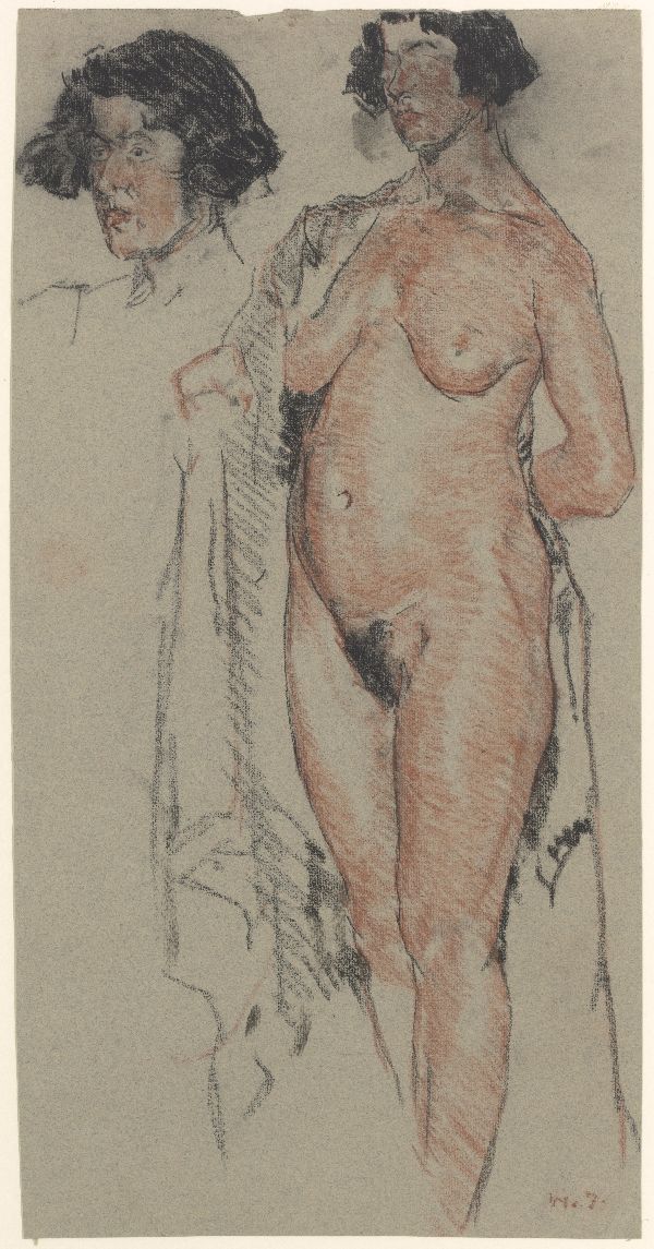 Schets van staande naakte vrouwenfiguur