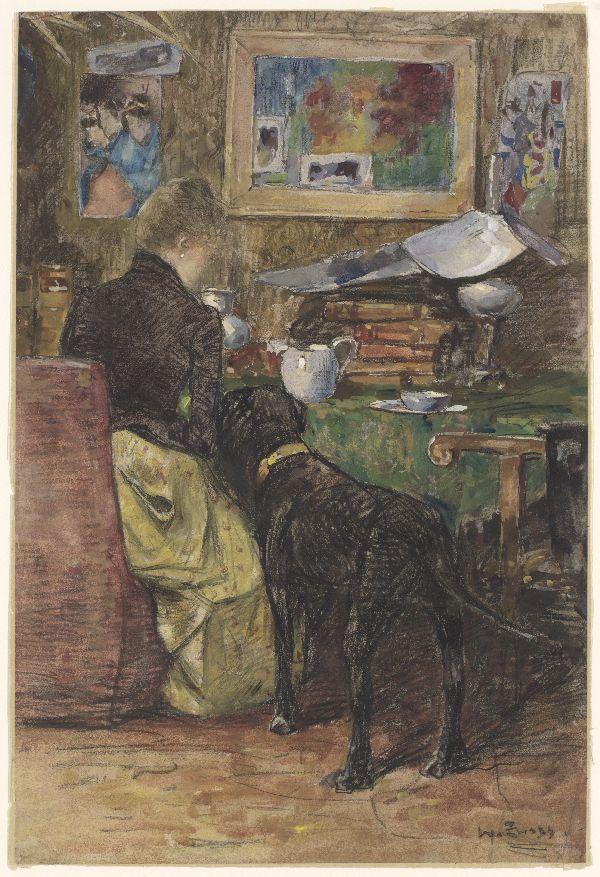 Dame met hond in interieur