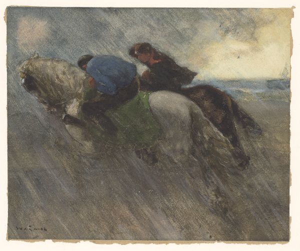 Jagende paarden met ruiters