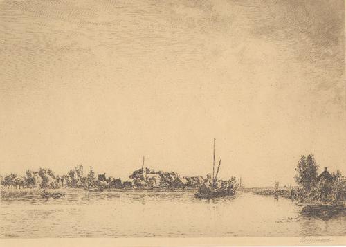 Aquarel van de Noorderdwarsvaart te Drachten