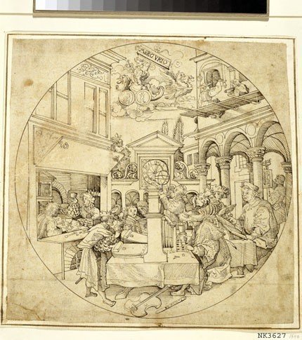 De planeet Mercurius: muzikanten die een orgel bespe...