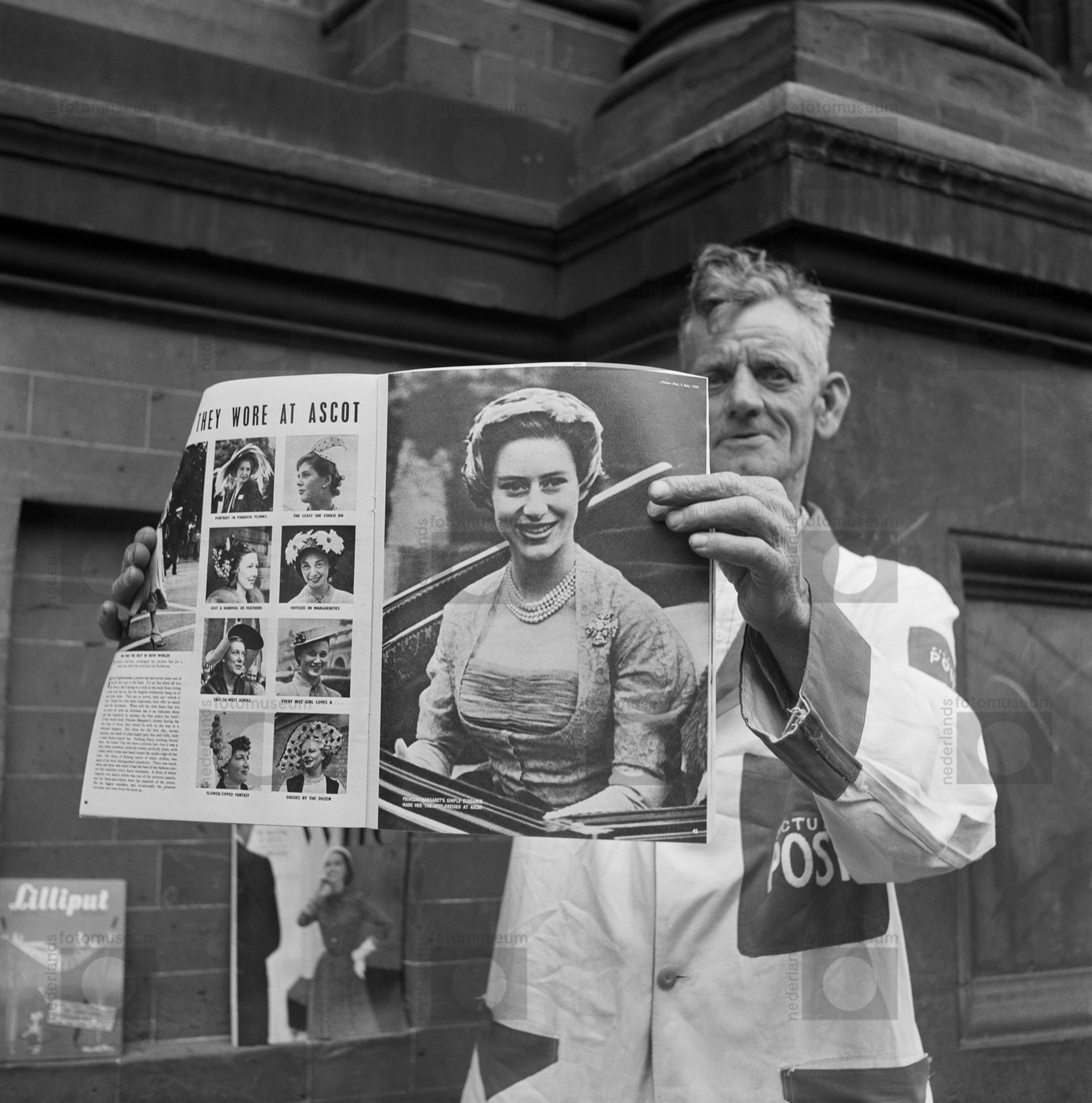 Krantenverkoper George Bentley in Fleet Street, Lond...