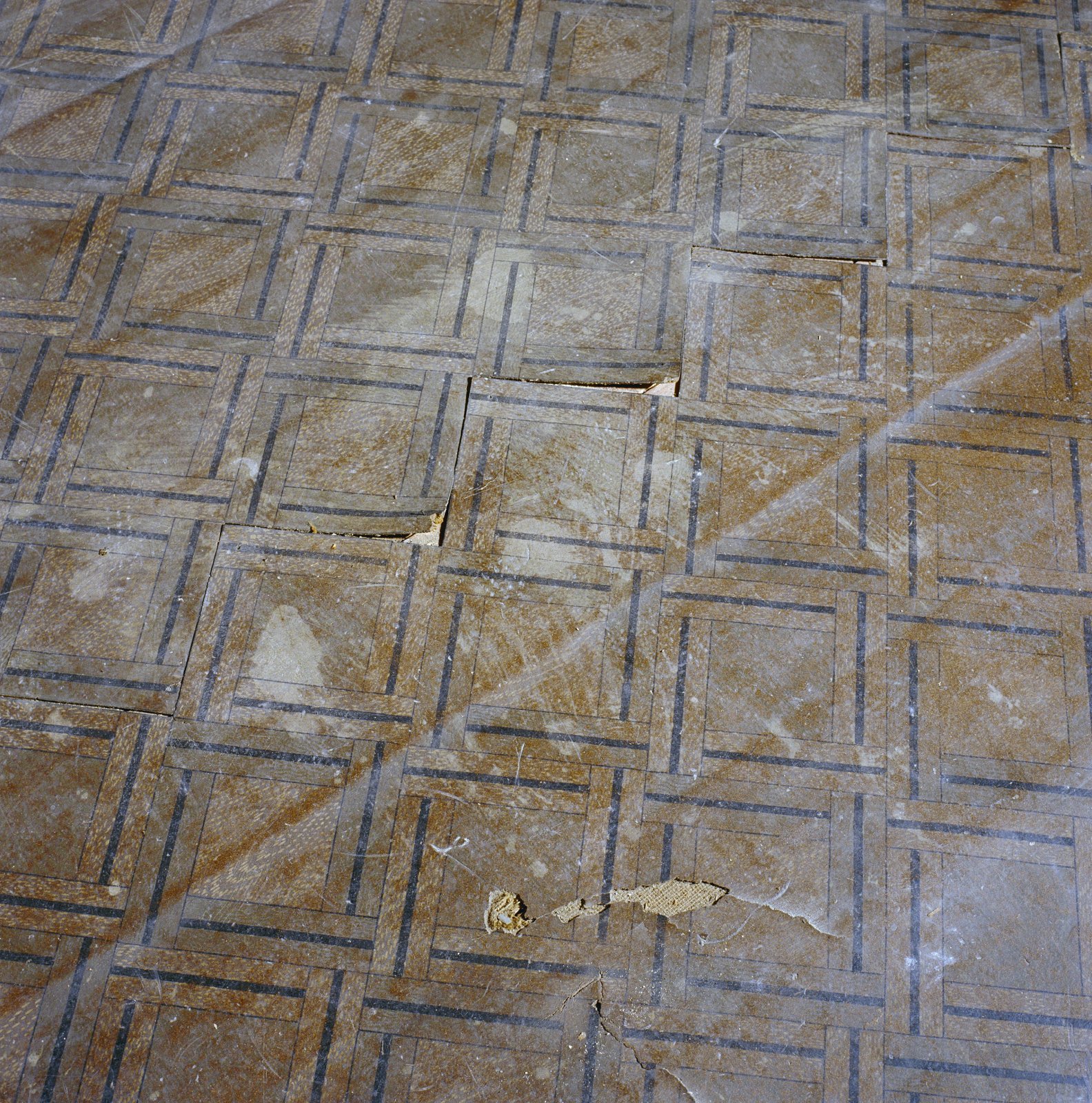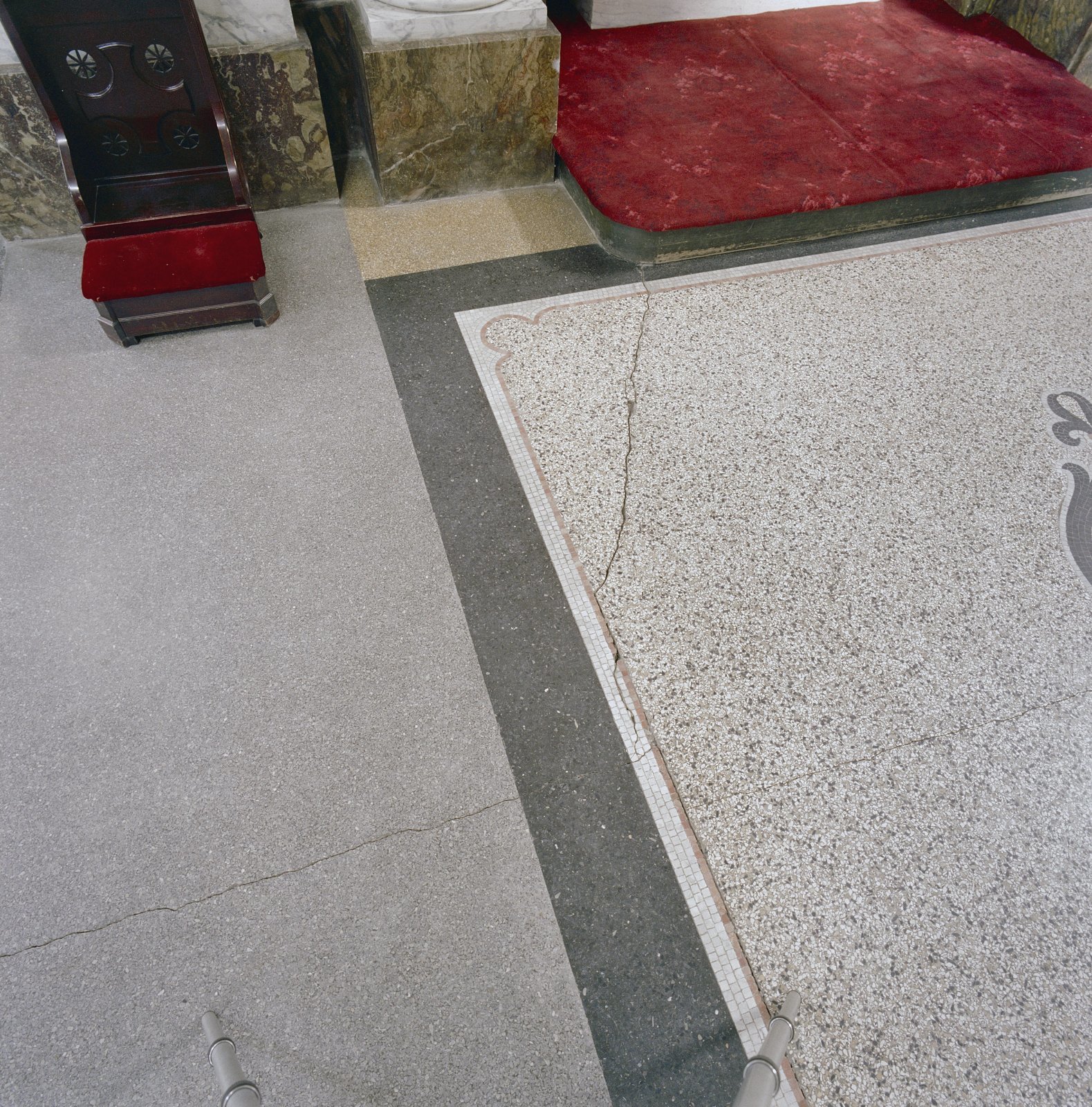 Interieur, vloer (terrazzo) met scheuren