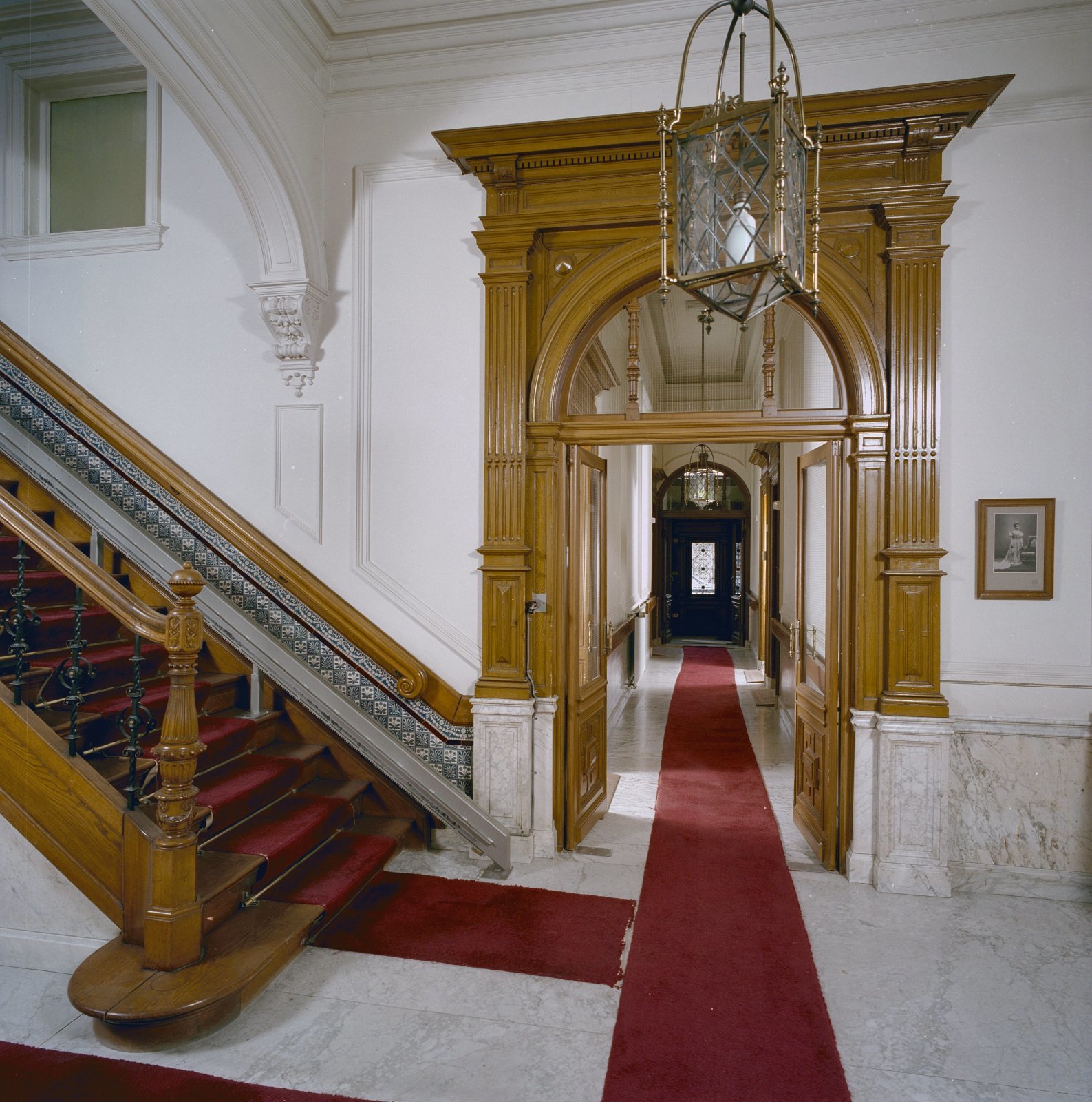 Interieur, zicht op trapopgang en achtergang