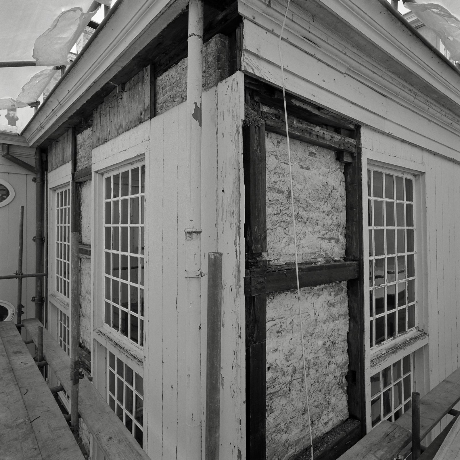 Corps-de-logies in de steigers, open wandbeschot, op...