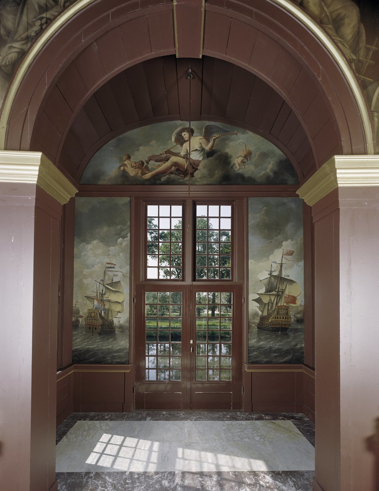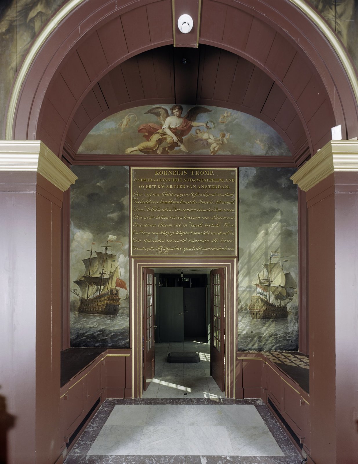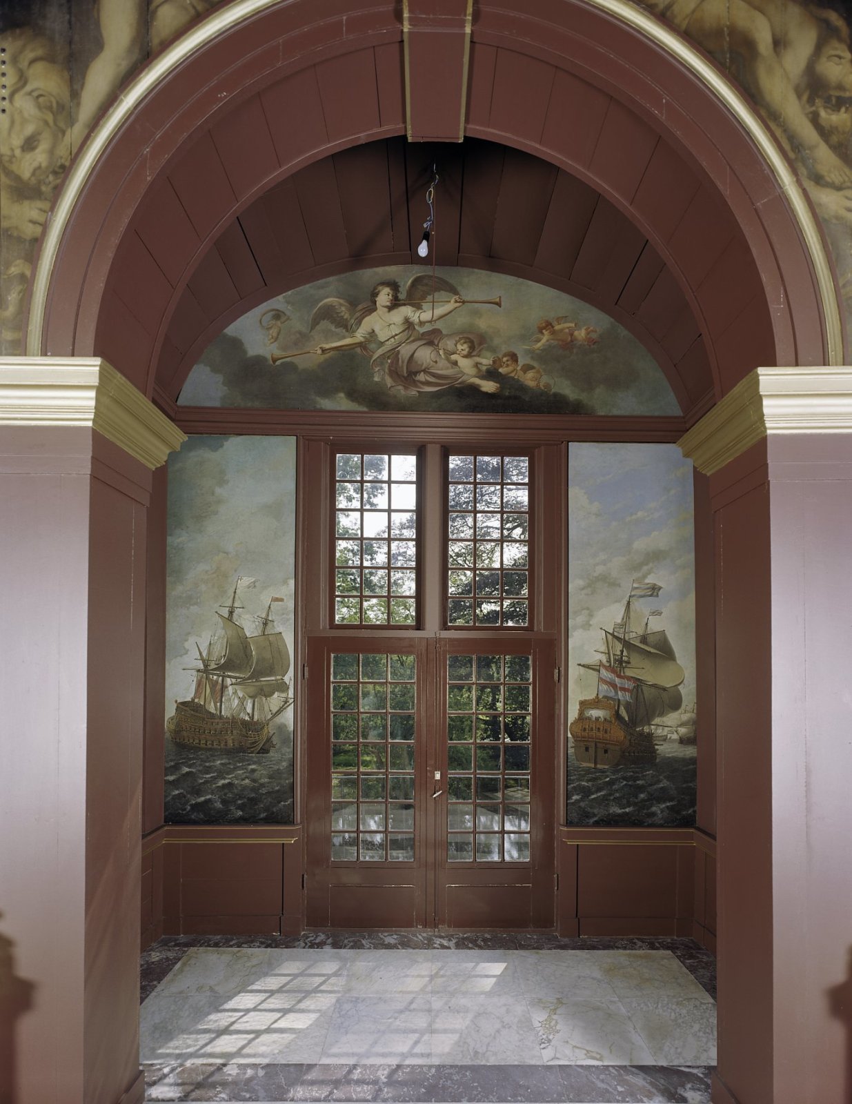 Interieur Trompzaal, schildering in ingangspartij