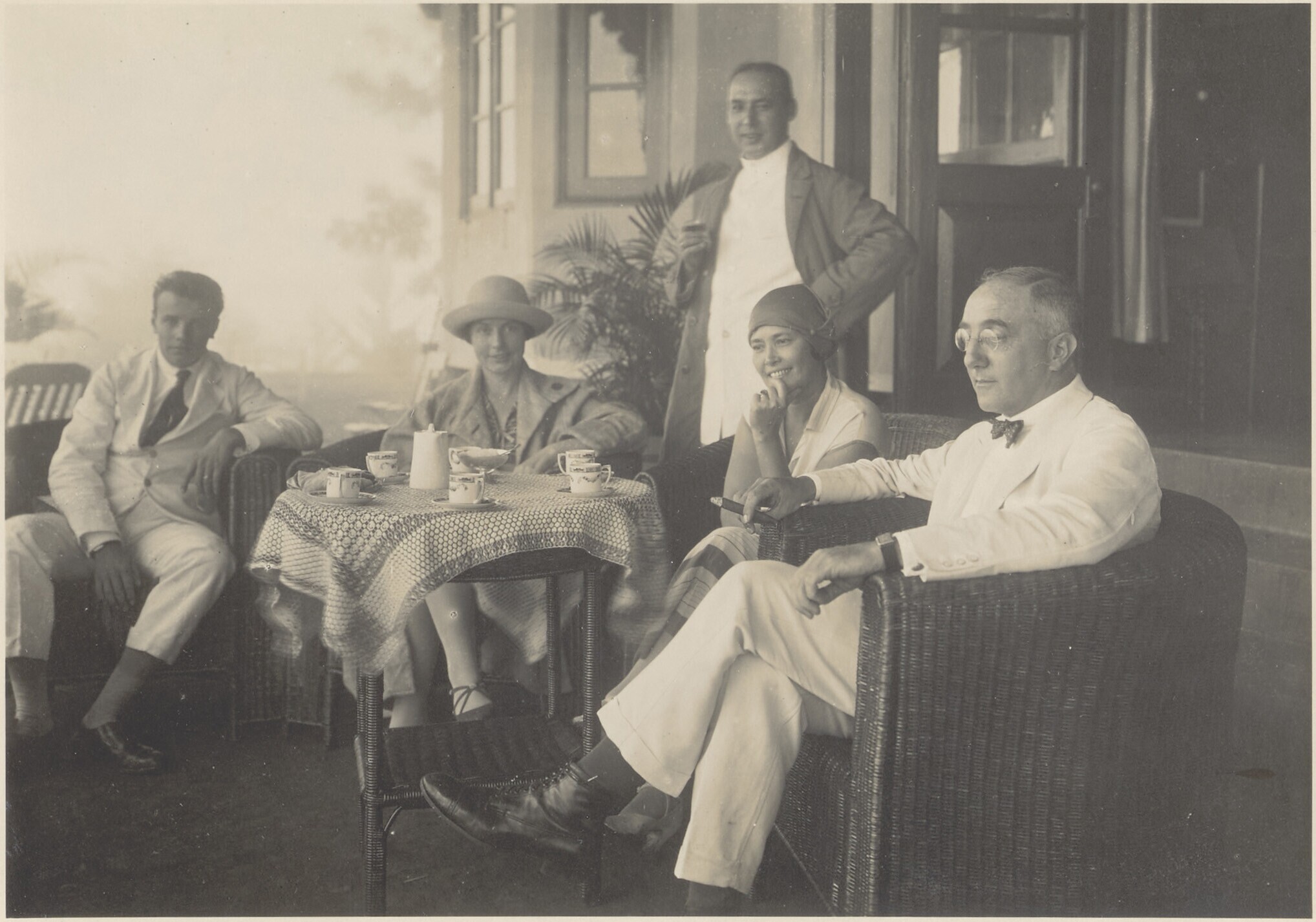 Portret van een gezelschap in de tuin