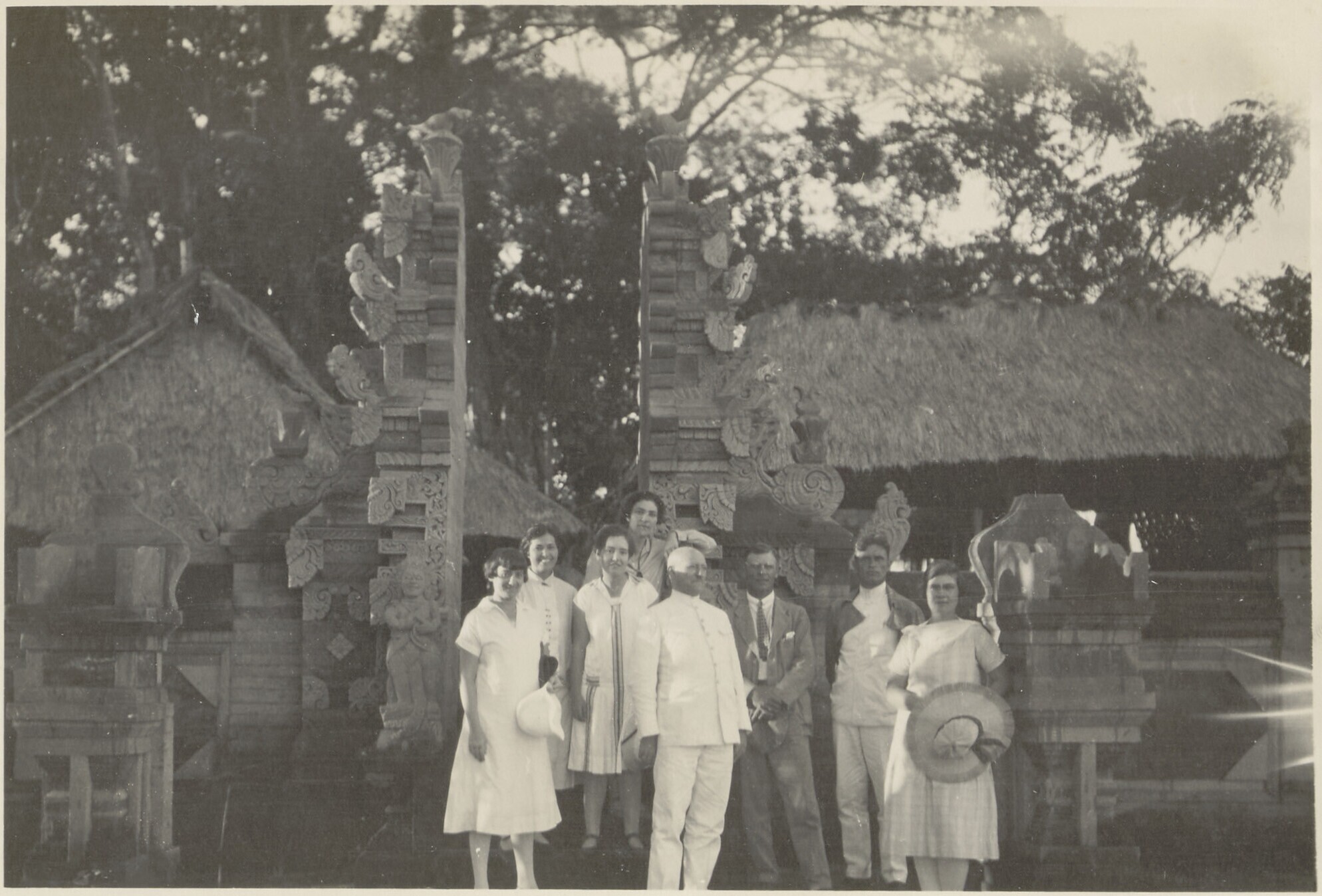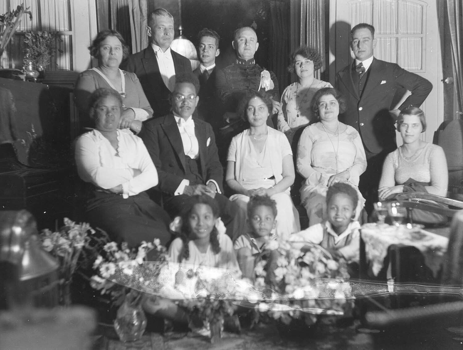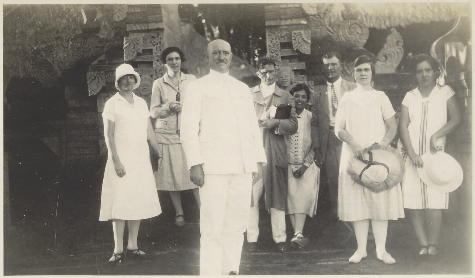 Groepsfoto, centrale figuur is Dr. Essed omringd doo...