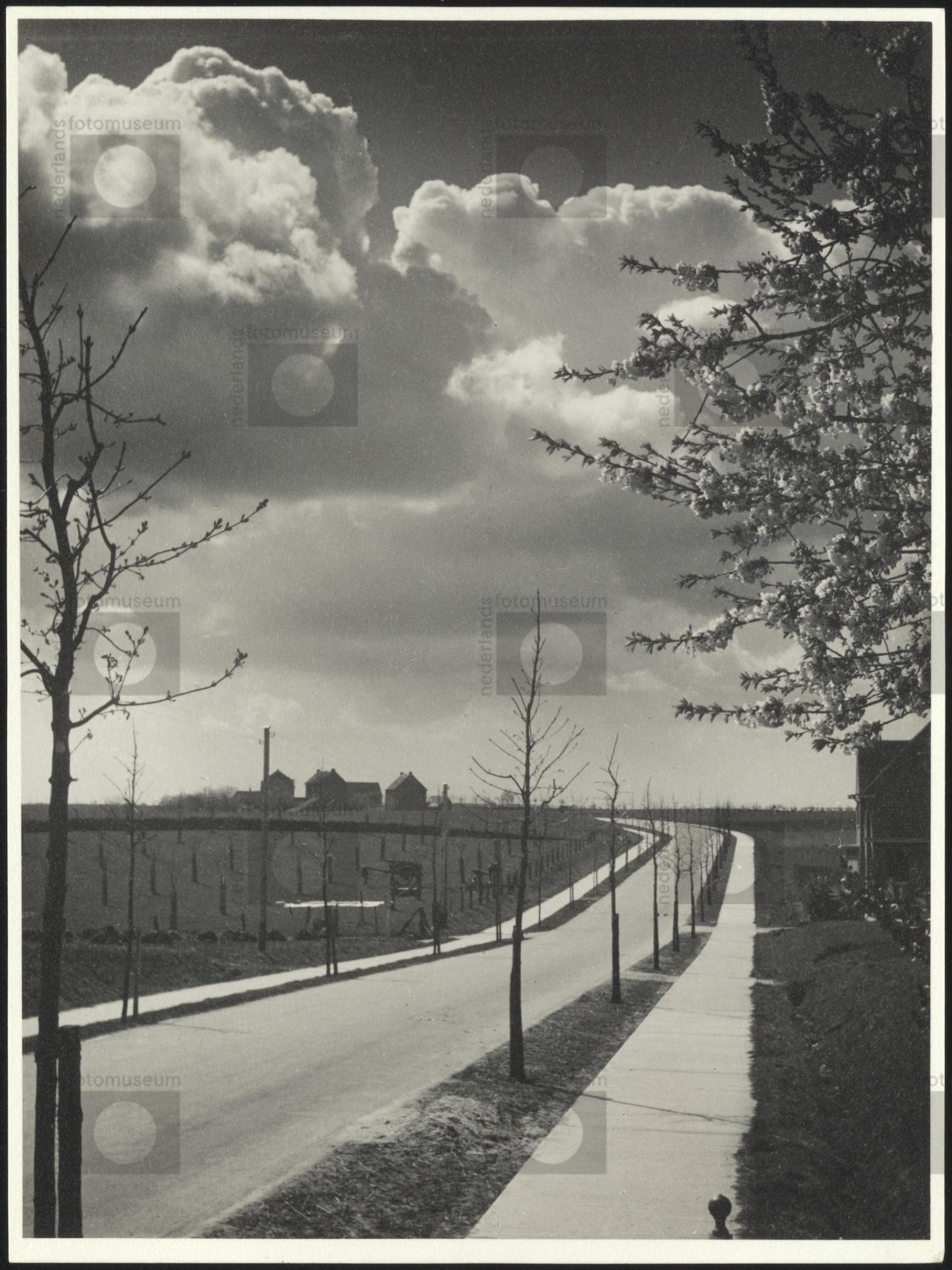 weg in lentelandschap met bocht in verte|[Werner Man...