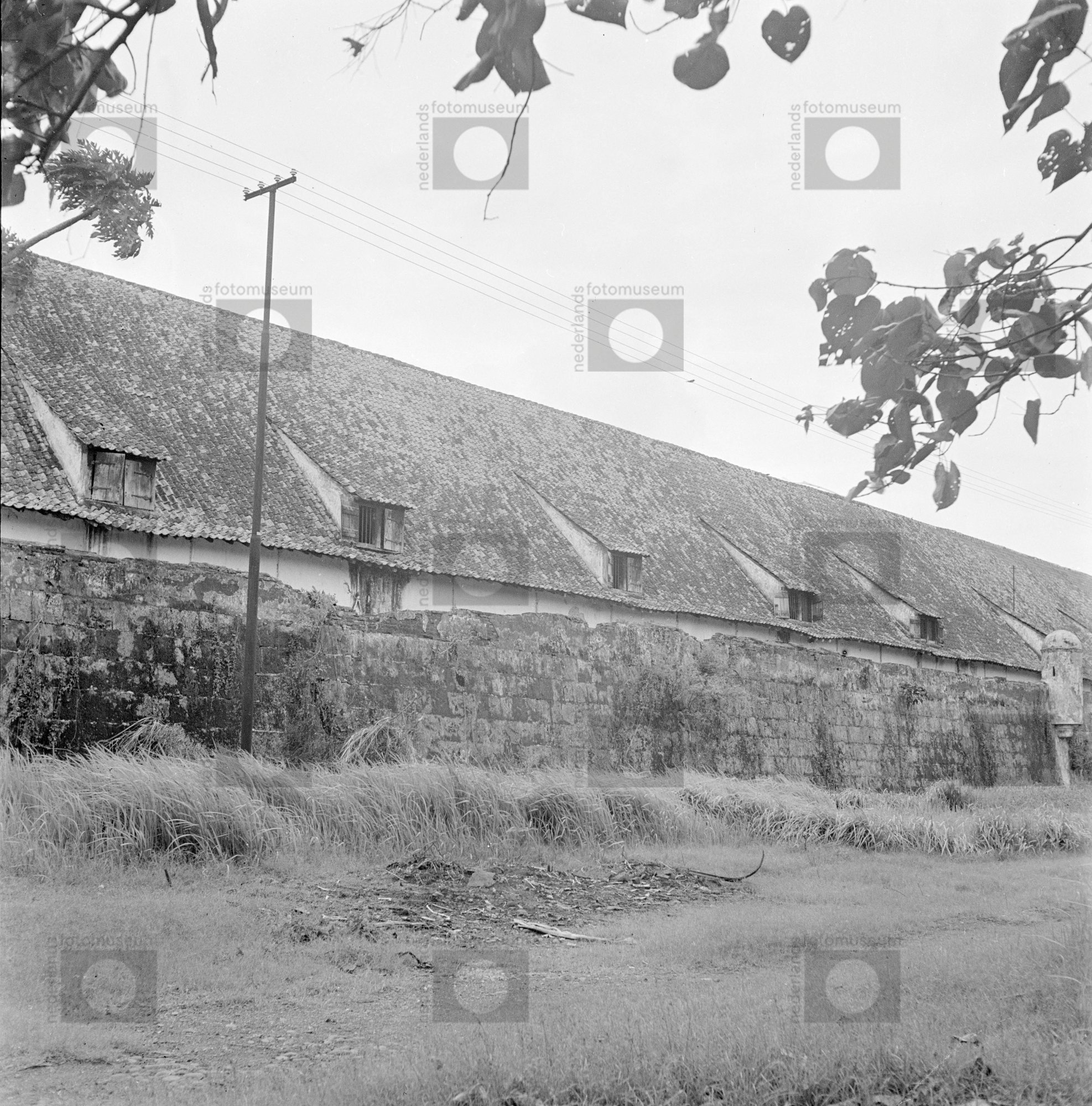 Voormalige V.O.C.-loods achter een stenen muur, Indo...