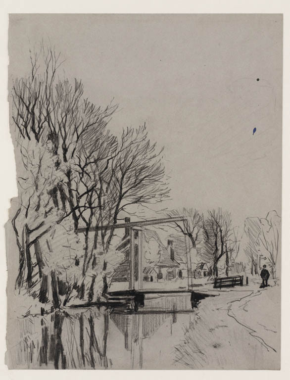 Landschap met ophaalbrug en boerderijen