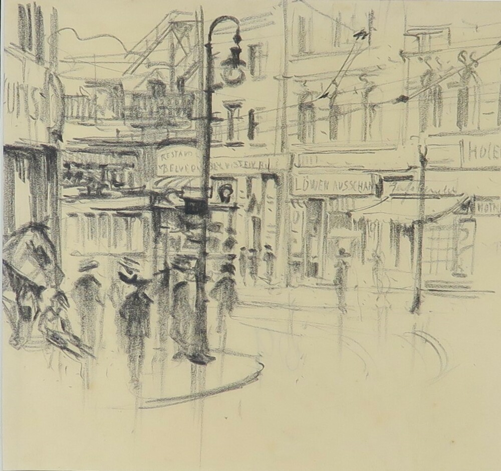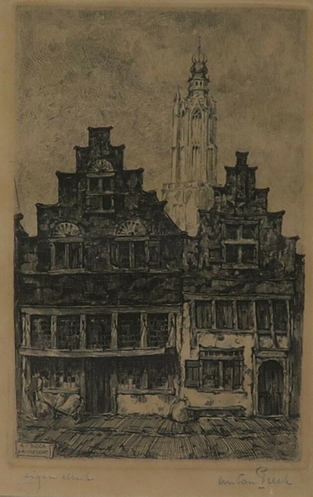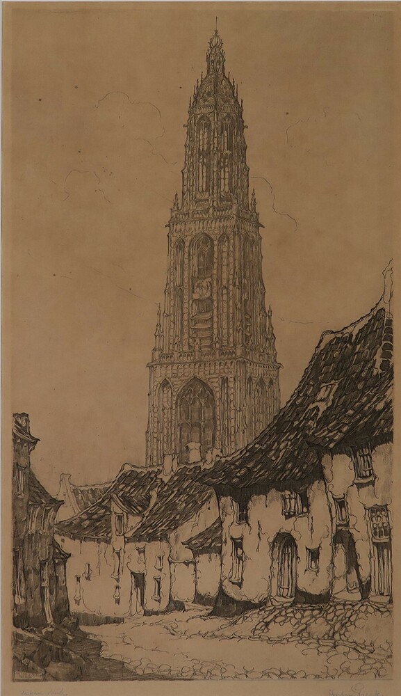Twee huizen, voorstudie kalenderplaat Amsterdam, Spu...