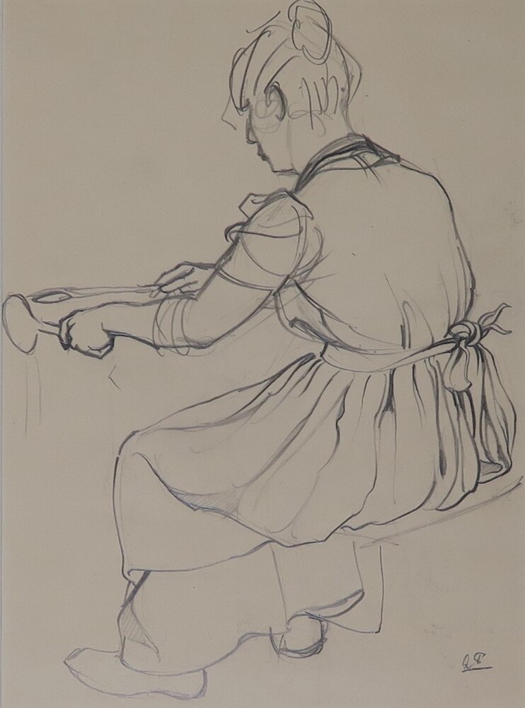 Voorovergebogen man, voorstudie kalenderplaat ‘Amste...