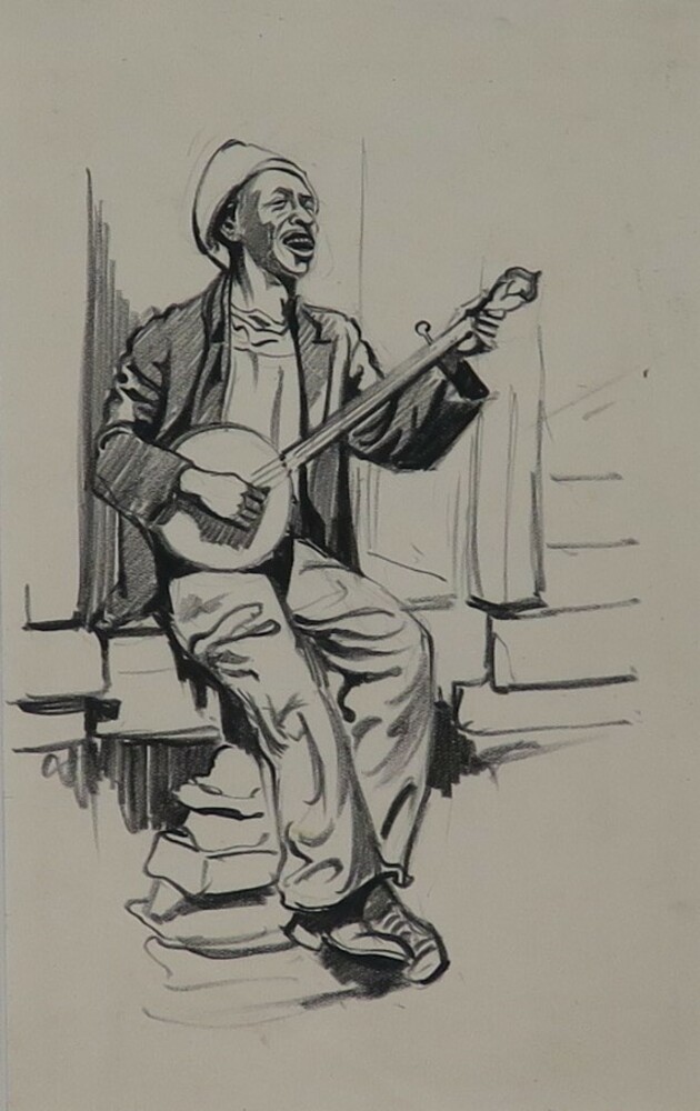 Man met gestrekte benen, voorstudie kalenderplaat 'H...