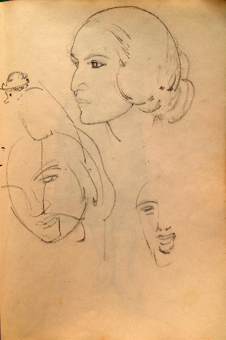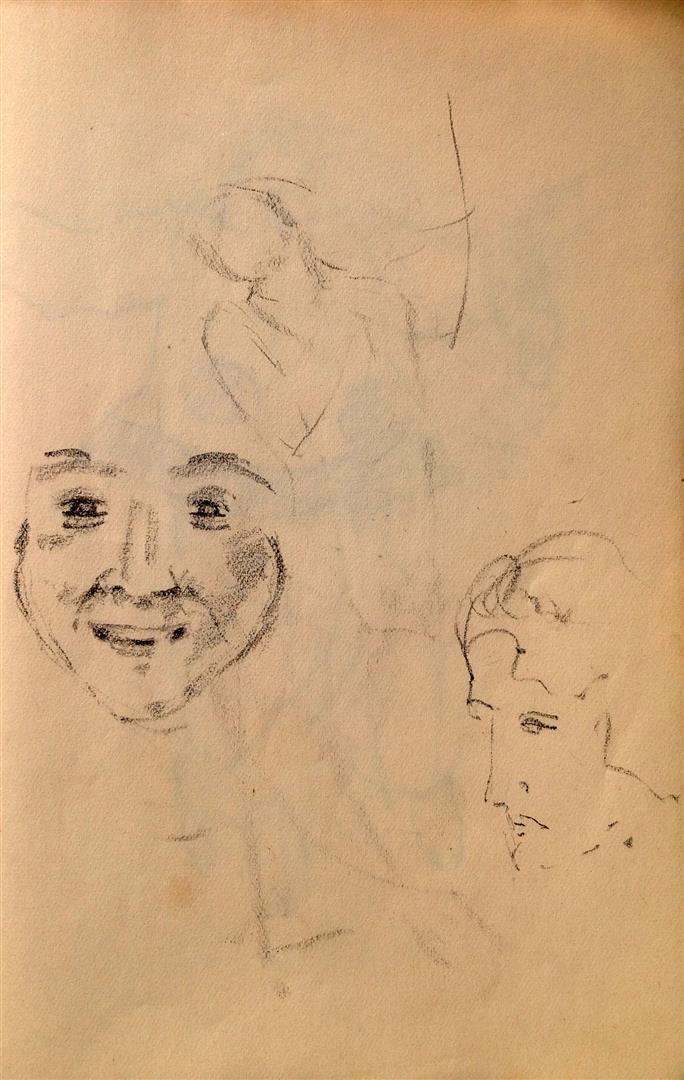 houtskool, krijt, rood krijt, zwart krijt, papier, beige papier (2)