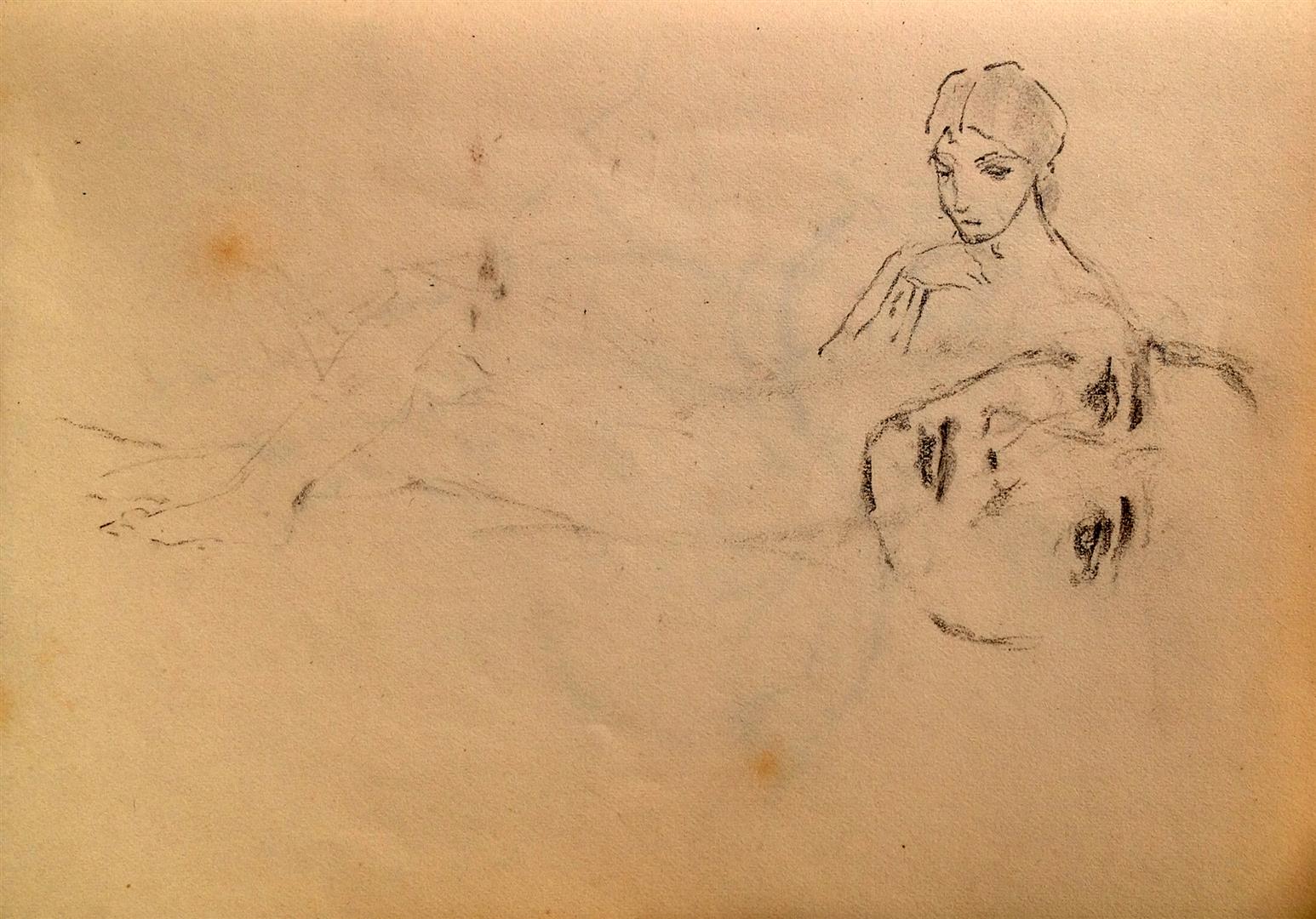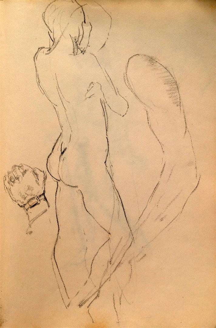 houtskool, krijt, zwart krijt, papier, beige papier (4)