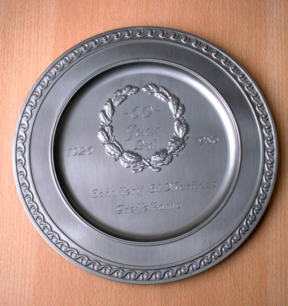 Gedenkbord van tin van het 60-jarig lidmaatschap van...