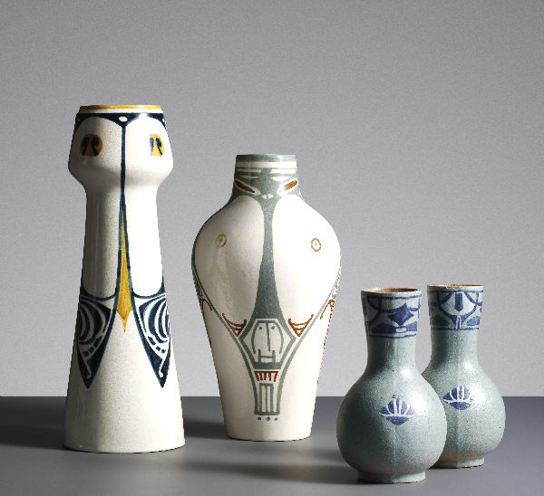 Drietal vazen met zogenaamde Rozenburg-decors
