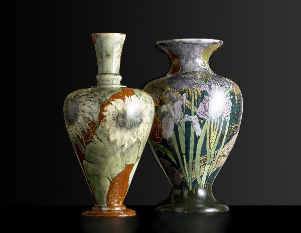 Tweetal vazen met bloemmotief