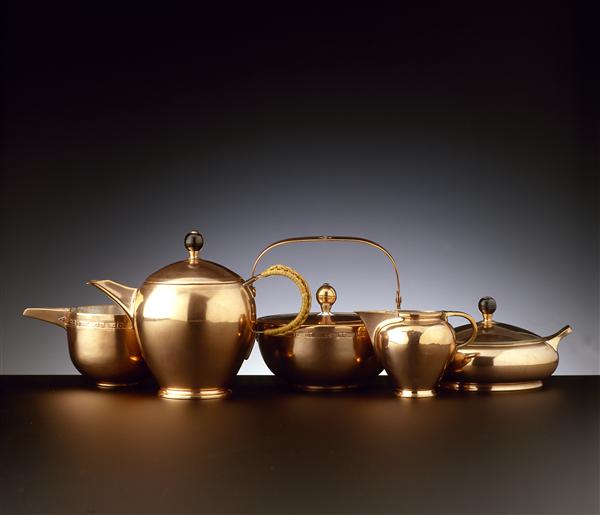 Bekervazen, kom en beker met decoratie in zwart en geel