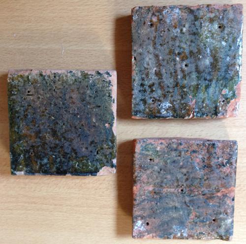 Zwart geglazuurde estrikken (mogelijk 17e eeuws), af...
