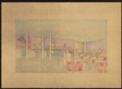 Perspectieftekeing van het ontwerp voor gebouw '...