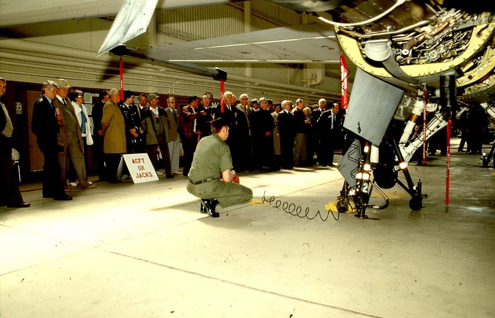 Personeel van de USAFE geeft uitleg bij een F-16