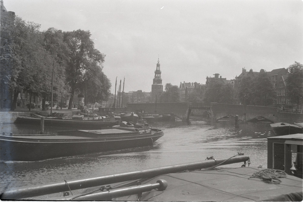 Een schip vaart door de Waalseilandsgracht in Amster...